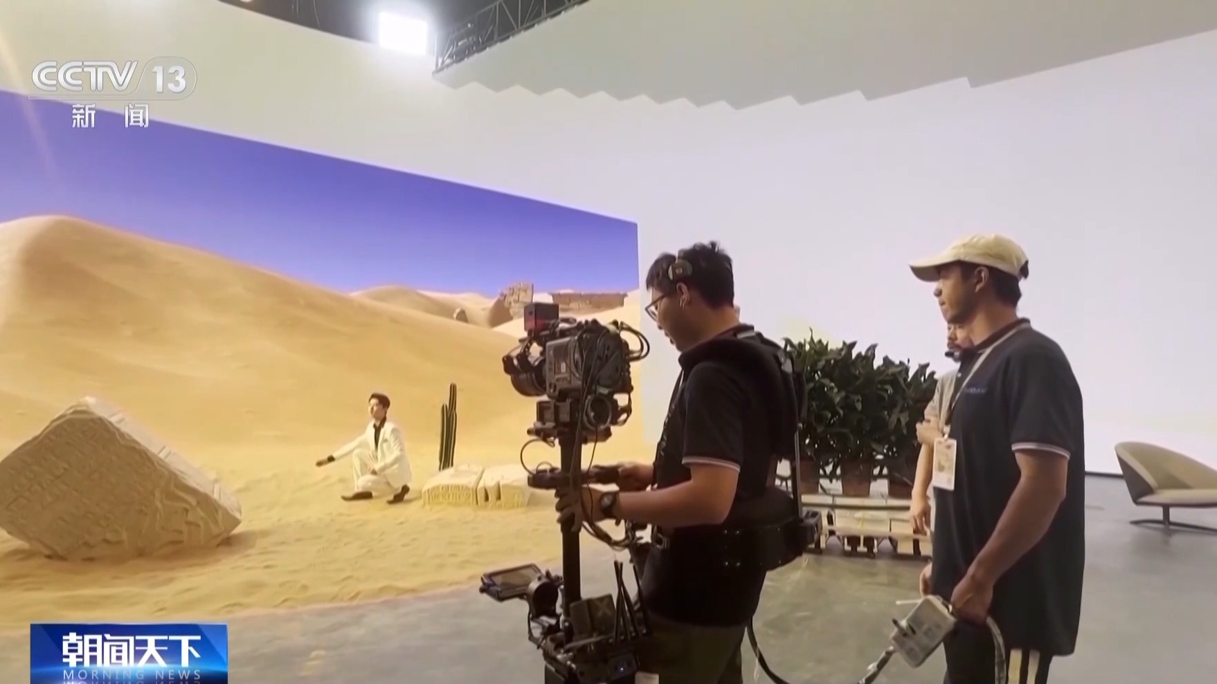 记者正在现场对着镜头做出脸色和动做,不只能正在拍摄现场及时看到虚拟结果,